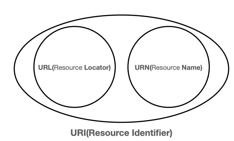- URI는 URN, URL을 포함하는 상위 개념이다