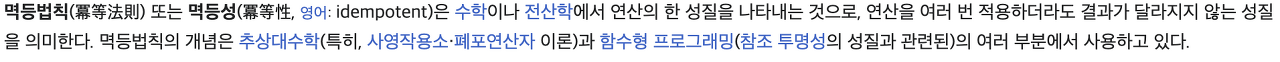 위키백과에서 정의하는 멱등은 아래와 같다.