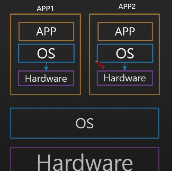 -> 일반적인 컴퓨터처럼 직접 OS가 하드웨어에 설치된 상태(Bare-Metal)로만 운영 가능했었다.(아래 그림 참고)
