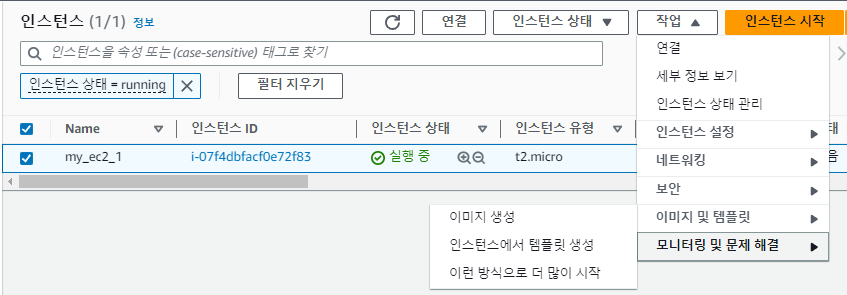 1. ec2 선택 후 작업 > 이미지 및 템플릿 > 이미지 생성 클릭