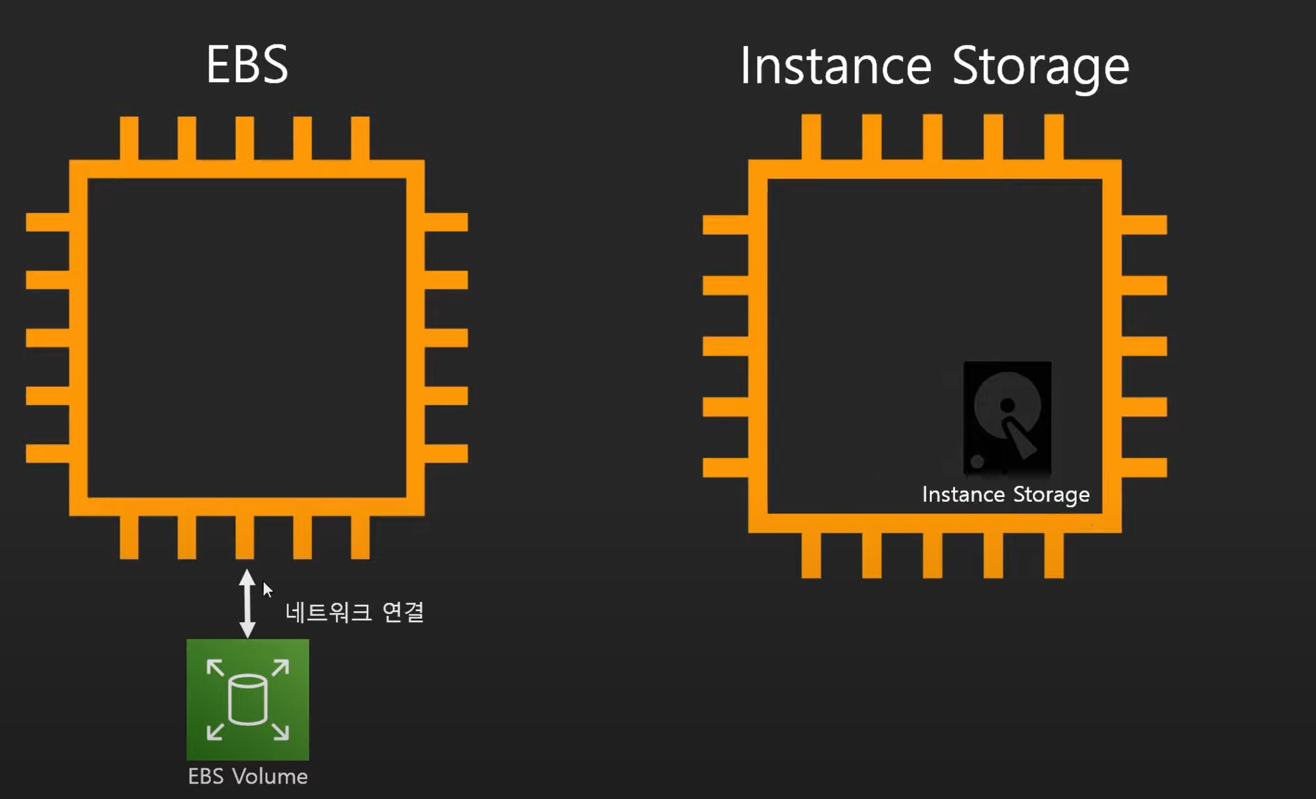- EBS 기반은 네트워크로 연결되어 있기 때문에 속도가 느림, 반면 인스턴스 내부에 있는 AMI는 속도가 빠르다.