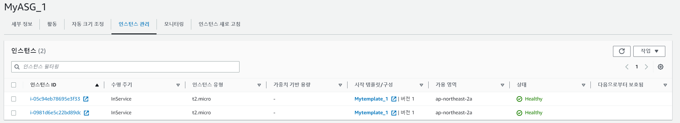 오토 스케일링이 2개의 ec를 자동으로 만들어주고 관리해 주는 것을 볼 수 있다.