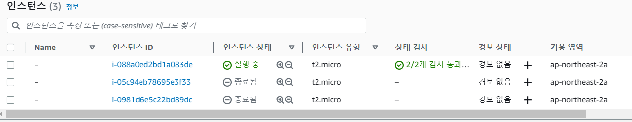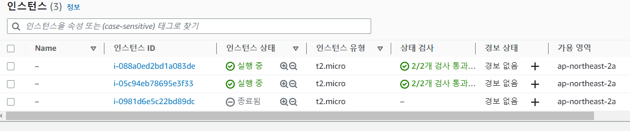 6. EC2 인스턴스를 보면 인스턴스 ID:instance i-05c94eb78695e3f33인 EC가 종료된 것을 확인할 수 있다.