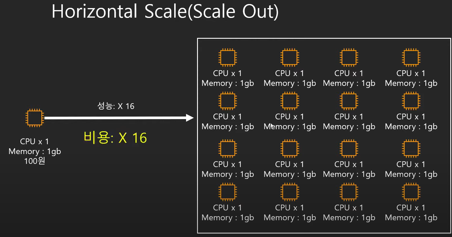 클라우드 환경에서는 scale-in 보다는 scale-out을 고려해야 한다.(저렴하게 많이 유연하게 서버 관리가 가능하다.)