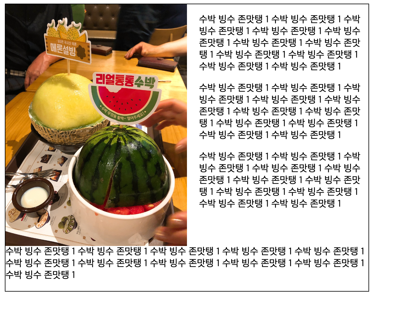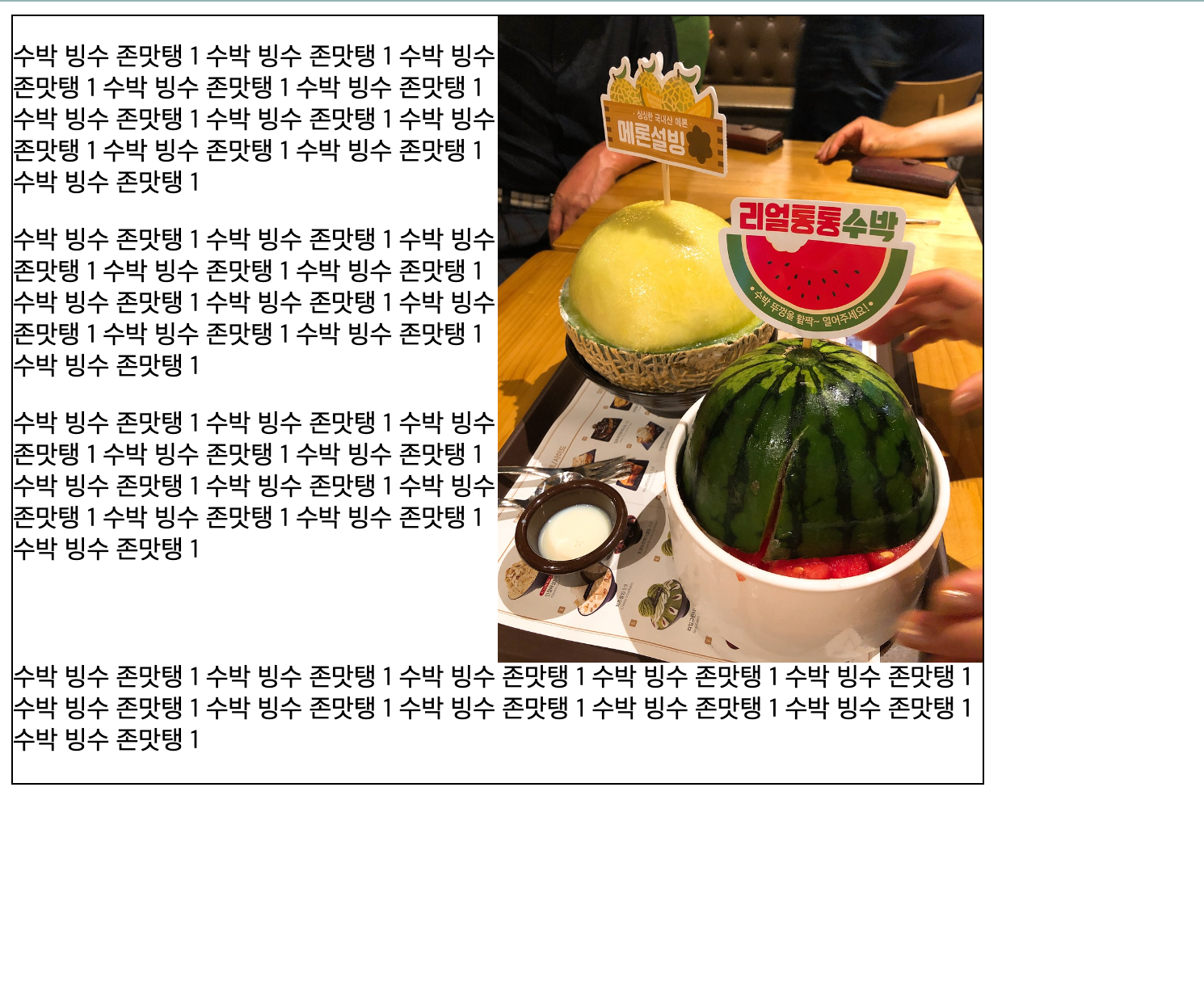 float:right의 경우 텍스트가 왼쪽에 배치되고 그림은 기본 배치에서 벗어나 오른쪽에 배치되는것을 볼 수 있다.