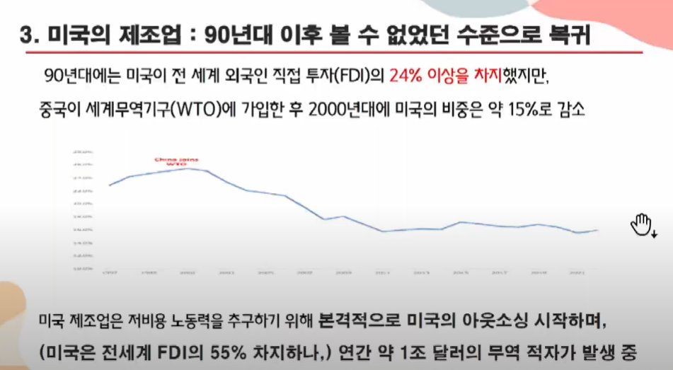 6. 현재, 미국은 패권을 잃지 않기 위해 리쇼어링과 보호무역을 진행하고 있음(보호무역은 리스크가 있음)