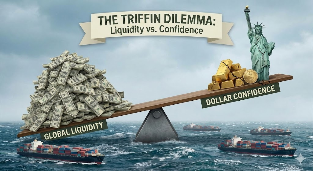 미국 경제학자 로버트 트리핀은 1960년 저서 <금과 달러 위기>에서 기축통화인 달러의 구조적 모순, "트레핀 딜레마"를 제시함