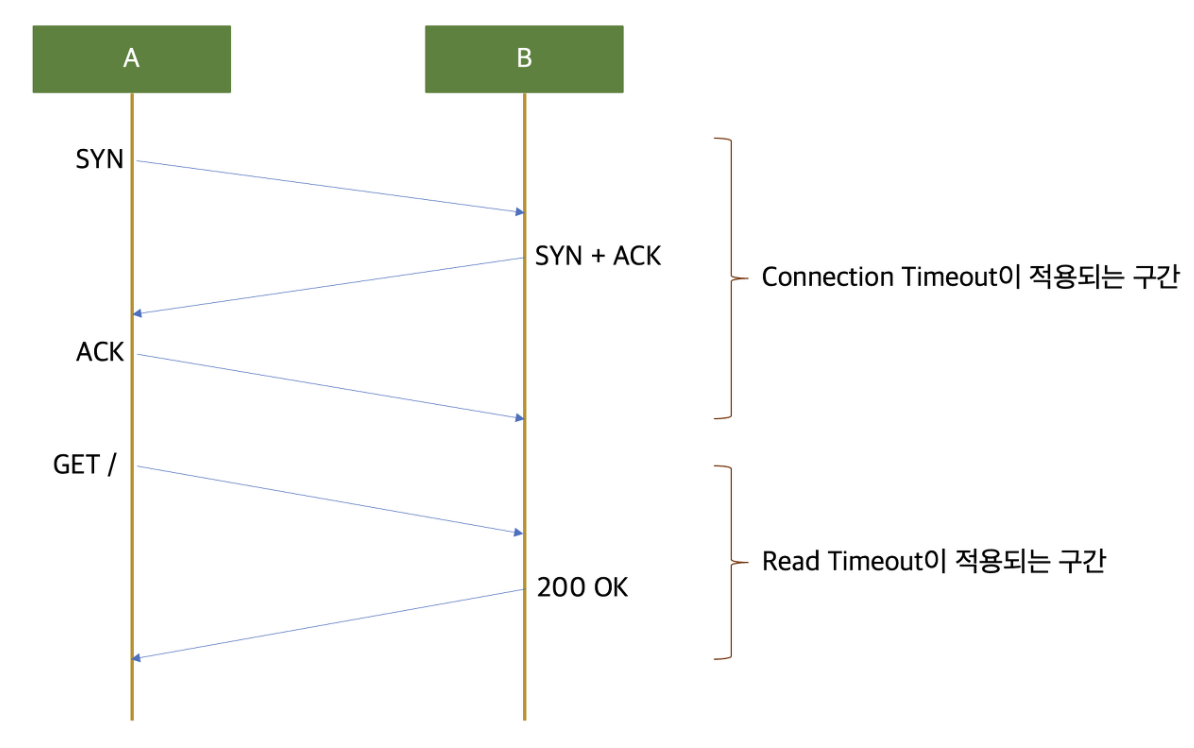 아래 그림은 Endpoint간의 세션 연결 시 Connection/Read Timout의 적용 구간을 그림으로 설명한다.